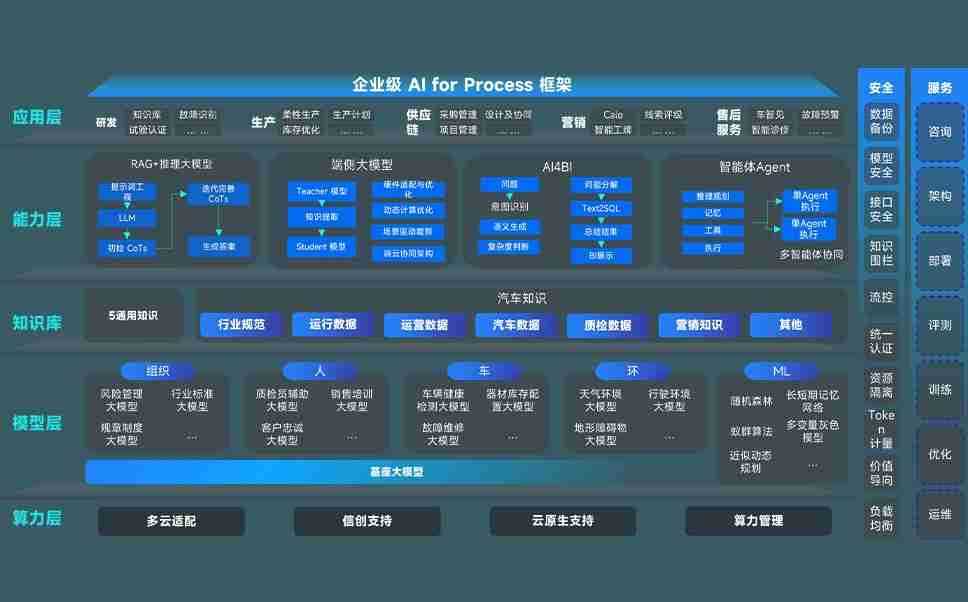 端到端的一站式AI工作空间深度融合了从企业战略规划到日常经营的全流程业务板块,,,定向解决车企内部领域多、、、部门多、、、链条长、、、场景碎片化等难题,,支持车企快速构建以AI为核心的生产力写作体系,,实现任务执行与AI能力的无缝集成与交互